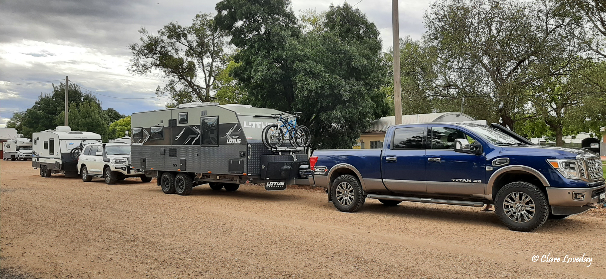 Gordie was showing us the new water system for his recently purchased Lotus van – designed to empty Jerry cans of water using the in-house pump to fill the onboard water tanks – ingenious except for 1 minor detail. He realised that in his rush to get away today he forgot to fill his water tanks at all!! This actually proved in some ways to be a benefit as the decreased weight meant he saved fuel carrying 180kg less weight – not that the Titan would have noticed the weight difference.