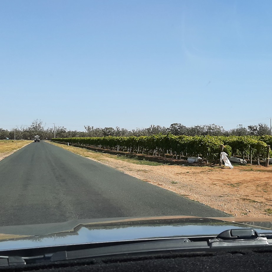 One slight detour when Kerry’s GPS led us up a backroad through some vineyards at Euston…..