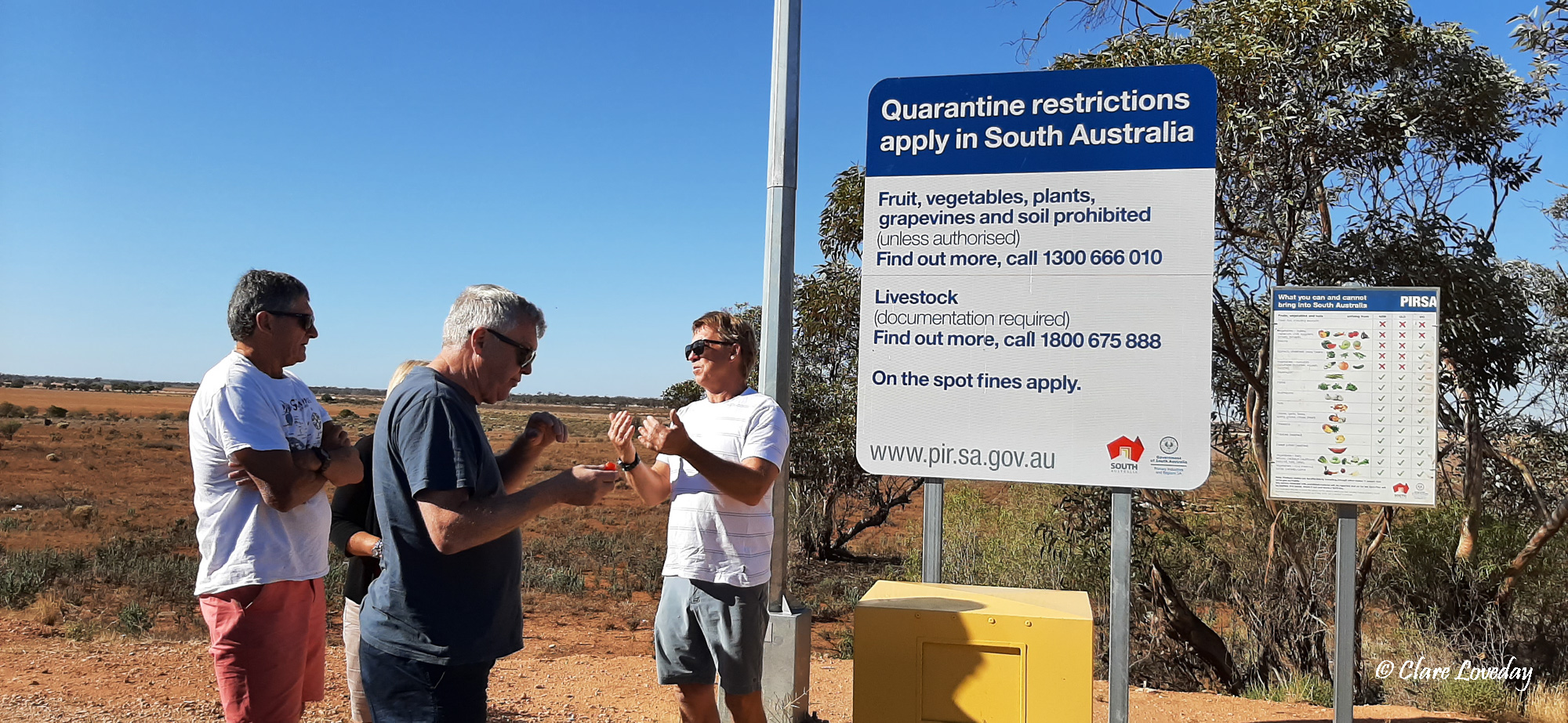 We stopped before the South Australian border to unload any fresh fruit and veg at the quarantine bins with Kerry hastily eating the last of her tomatoes and then headed to the Quarantine Station for inspection. The officers were fairly casual although Rose must have looked suspicious as they went through the Pearl and the Snowy with a fine-toothed comb even looking under the bed!