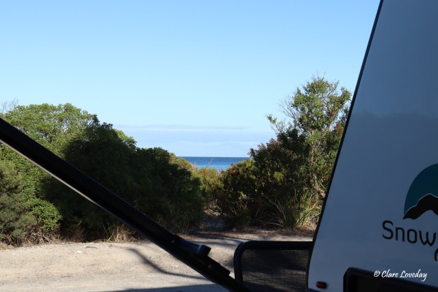 Our sites were beachfront – we had a water view from our van – but the scrub in front was great for protection from potential wind!