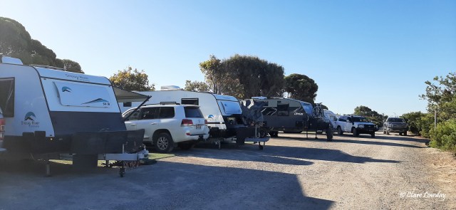 We arrived at Marion Bay Caravan Park, set up, then Branch and Trev went to work on checking the repairs more thoroughly. The tanks appear intact, and everything else seems undamaged – McGyver’s strapping held well!! A more permanent repair maybe in store over the next few days…