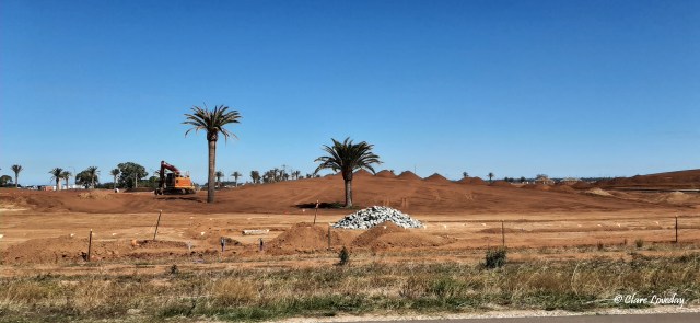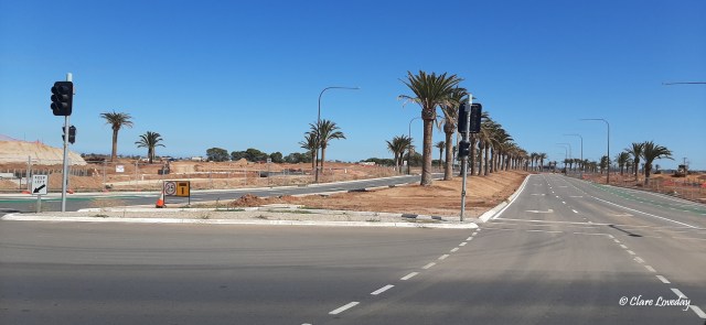 Beryl and Rosie had kindly done a coffee run while we had gone to get Trev, so we met back in the shopping centre carpark, picked up the coffees and continued on. Driving out of Adelaide there were a lot of new subdivisions going in – some with very expensive landscaping using huge date palms, still in among the farmland on the city outskirts.