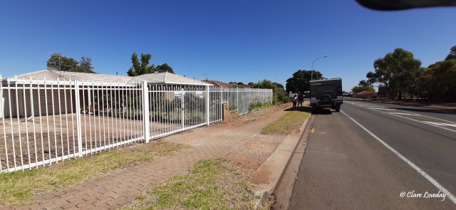Kerry and I were watching as Gordie was unhitching his van so we could drive to the shops when an old lady came out of her house that we were in front of. We though she was coming out to see if we were OK or maybe offer us a cuppa, but nothing was further from the truth. She abruptly said “I have already called the council – you can’t park here – I can’t see to get out of my driveway “etc etc…. Kerry politely explained the breakdown situation, but she would not have a bar of it – very rude!! Gordie explained we would not be there very long – she was still not happy, so Gordie moved the van further down the street…. Looking at her place it looked like Fort Knox on a bad day so probably explained why she was so aggressive….