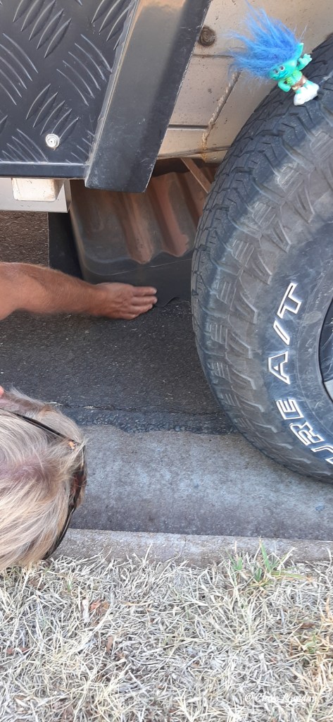 We rang a local caravan repair place who told Trev that the brackets were easily replaced with a metal strip that we could get at Bunnings. Providentially not only did we break down in a perfect place to stop, the Bunnings was only 10 mins away – 5 minutes past the shops we were going to for groceries.