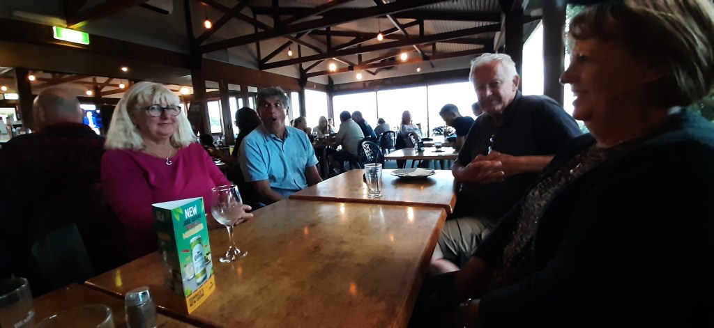 Dinner at the Tavern was great – the place was very busy, and food excellent. Back home we had coffee in the salubrious Hunter Lotus – the club lounge and 2 poufs being able to accommodate 8 guests!