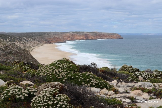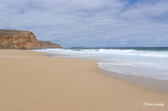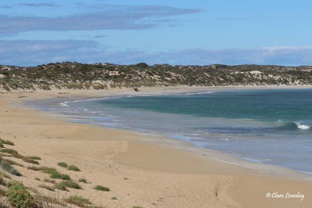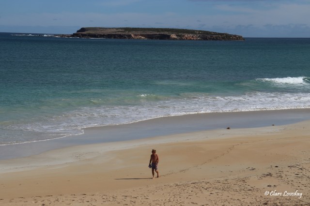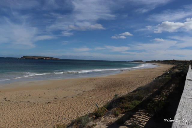 The Hunters stopped at the National Park Office and went in to sort the NP pass issue out and planned to meet up with us at our first stop. The rest of us drove to Pondalowie Bay – place of great surf and lots of dolphins…. we walked along the long boardwalk from the carpark to the beach and alas when we arrived the surf was small and no dolphins to be seen. However, the views and beach made up for this – it was a beautiful location.