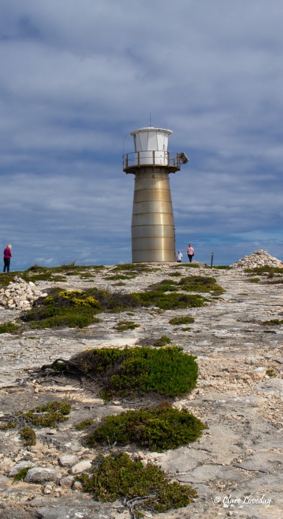 At the end of the cape stood the lighthouse – again a different structure this time of stainless-steel sheets. The lighthouse was built in 1980. In front of the lighthouse was a small Helipad – it was hard to imagine landing a chopper in such a small location with the winds as they were – it would take an expert pilot to do so.