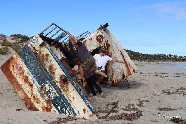Up along the beach we could see in the distance a shipwreck on the sand so while waiting for Gordie and Kerry we all walked up to have a look. Trev stayed behind to wait for the Hunters.