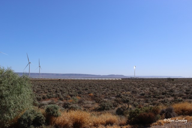 …. then turned west toward Port Augusta. Along the road were huge wind farms and solar farms which were not there the last time we passed through this way. Apparently, they generate enough electricity for over 180 000 homes – although they do add an ugly element to the natural landscape!