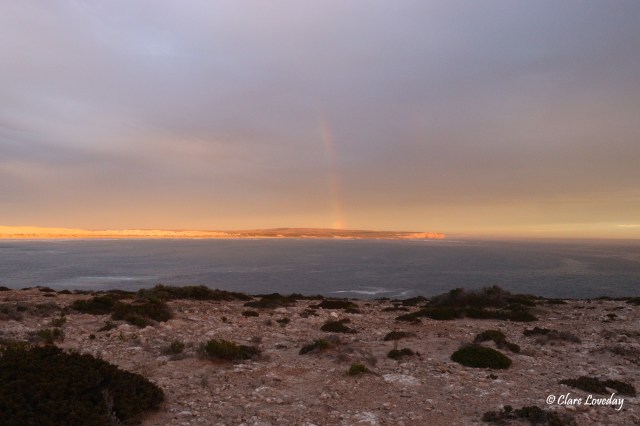 Just before dinner the sun came out and the dunes shone like gold! A beautiful rainbow arched across the bay to the headland – magnificent! The sun began to set and we raced up to the headland for some spectacular sunset views!!