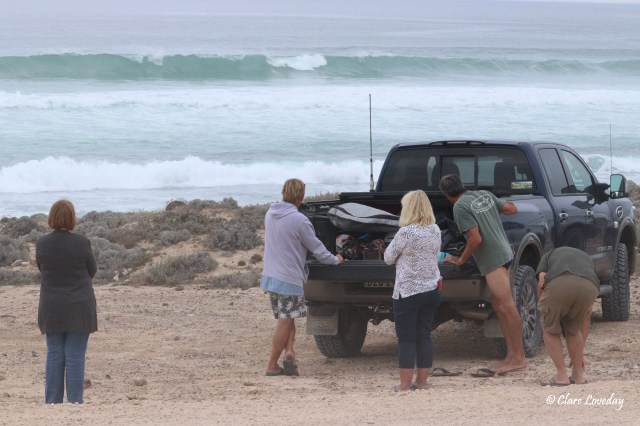 After driving up the highway for about an hour, we turned onto Sheringa Beach Road – an unsealed road out to the campground which was in pretty good condition – just a few corrugations….that did play a bit of havoc in a van or two….. Branch was kept in the dark by some of the crew but I am sure all will come to light after a bit of snooping around!