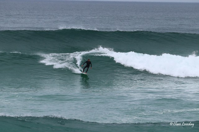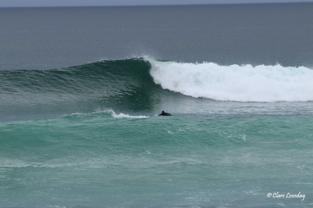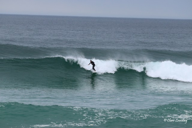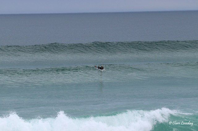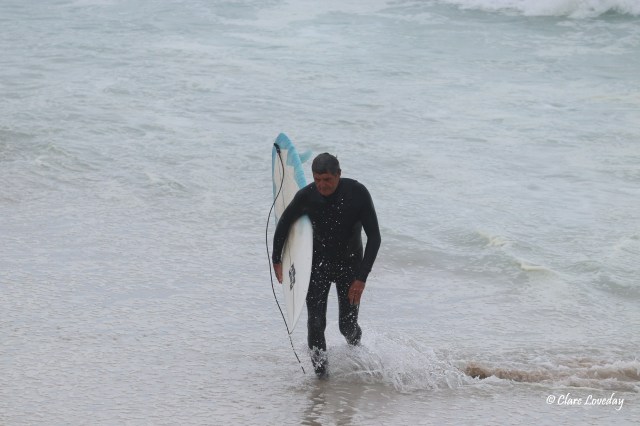 Kerry was much relieved when Gordie and board came in in one piece – he decided to go for one more wave but the swell was too powerful and Gordie was by this time a bit spent…. So he changed his mind and came back in…
