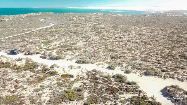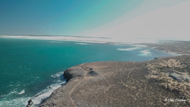 We decided to try putting the drone up first to get some pics of Cactus Beach, the point, and the surf so we stopped just near the track down to the point that Gordie had driven down for a surf and put the drone up. We got some good pics of where Gordie was going out … and his lonely Titan…. And then the wind was too strong to complete the flight, so we had to abort….
