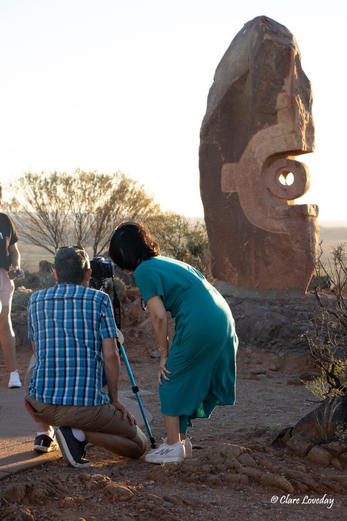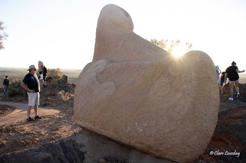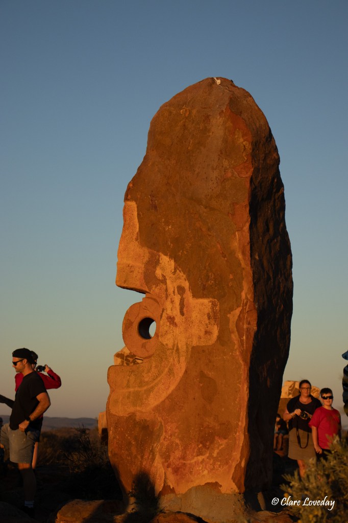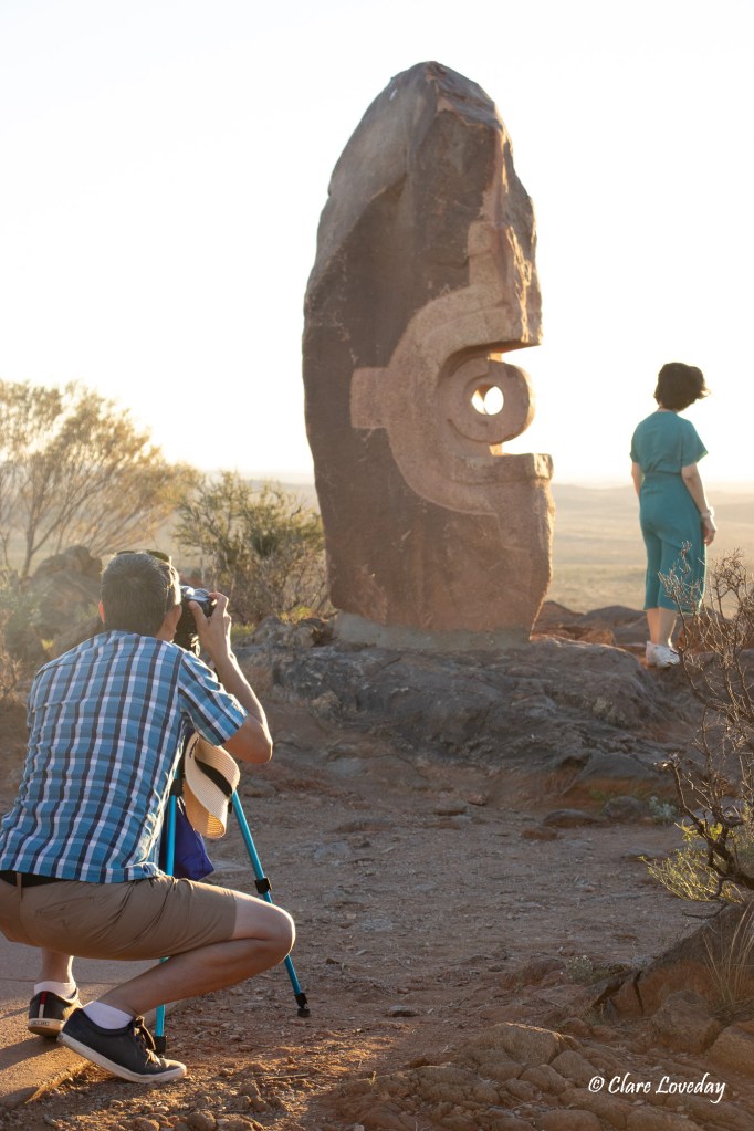 As Dave and Rose missed the Living Desert sculptures last time we were in Broken Hill due to Dave’s tooth issue, we went out at sunset for a look – there was quite a crowd out there looking around and taking the obligatory sunset pics….including a Japanese couple who had an apparent monopoly on one particular statue with their tripod and camera gear – the wife worked the camera better than Rosie and people in the crowd were getting a bit annoyed as it was hard to get a good pic of the sculpture due to the antics of the couple… and their thousands of images they were taking…