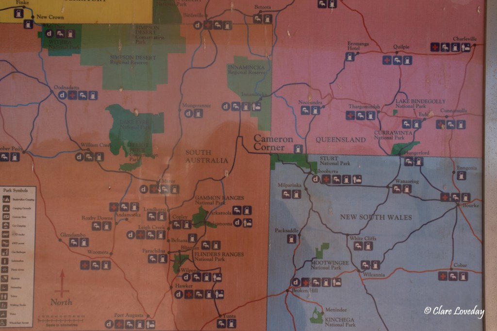 At the border there was a gate in the dog fence (longest fence in the world) which we opened and drove through into South Australia – turned right and drove immediately into QLD were Cameron’s Corner Store and Fuel stop was located.