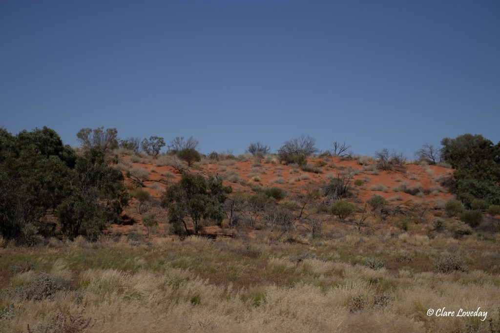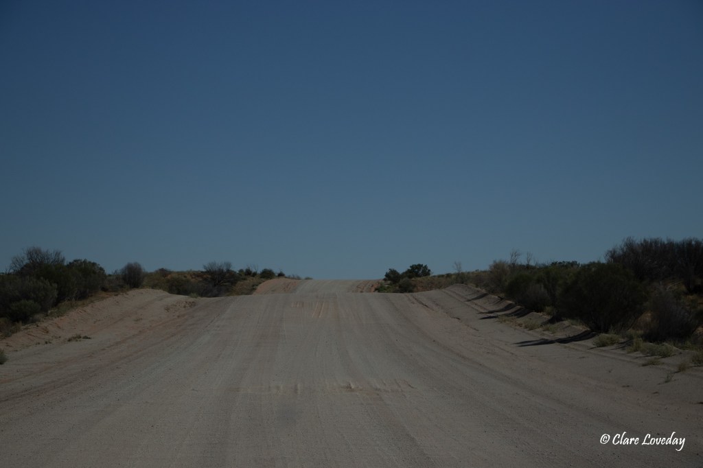 As we got closer to the corner the red dunes became more evident and the road was undulating with multiple crests which required caution on approach….