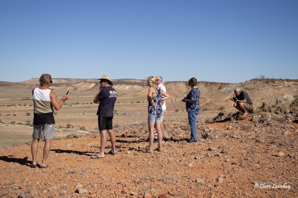 Once at the top, we stopped at the Jump Up Lookout to take in the expansive vista over the plains….and like everywhere we go – you don’t see another car on the road but when you stop there are people there… Trev got talking to a couple from Newcastle who just happened to stop there…. They were on their way to Tibooburra having come through Cameron’s Corner…