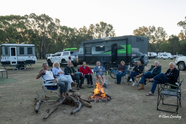 Dave and Gordie started up the fire and we spent the evening relaxing and meeting our fellow campers. Gordie managed to befriend a guy named Casey who gave us his wood – he was on the way to Lightning Ridge so did not need any more – he came and sat around the fire with us sharing his life story….