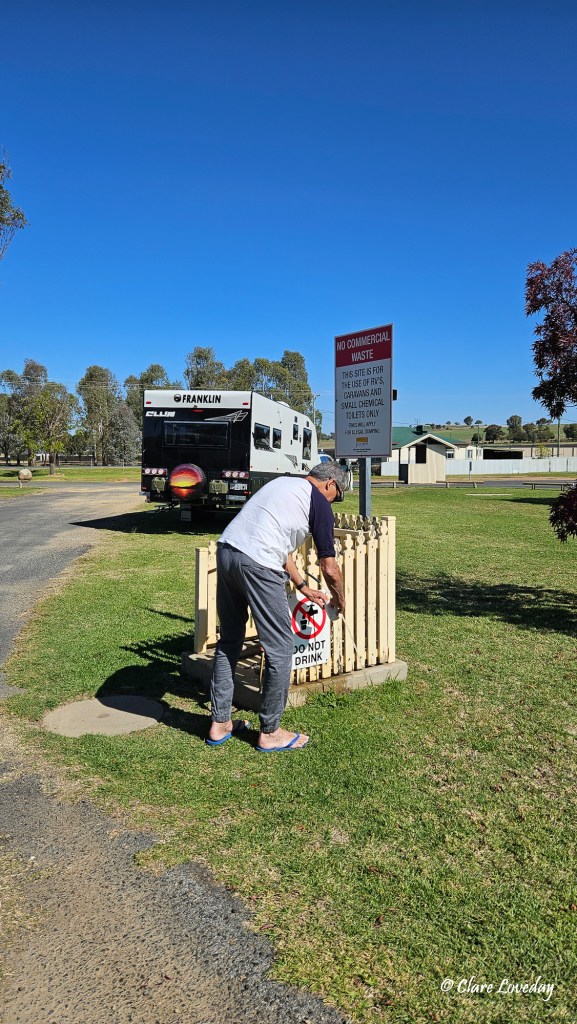 Rose and Dave found the prime parking spot near their favourite dump point… and Gordie ignored signs doing his washing up at the dump point much to Kerry’s disgust.