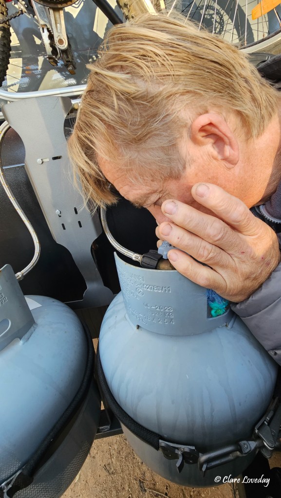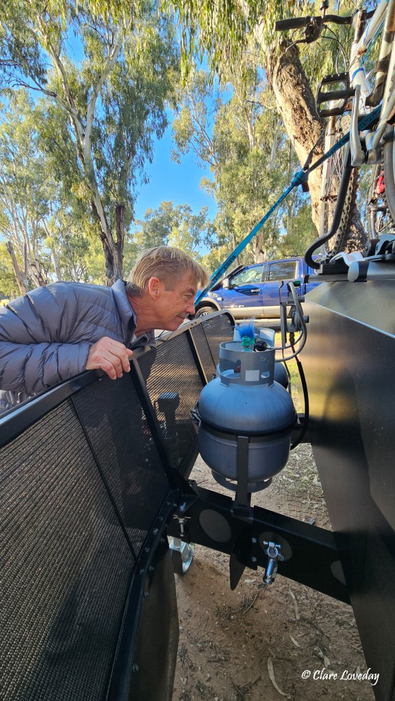 Branch had been laying low after the excitement in the Wells camp yesterday – however there had been a late development overnight at the Loveday van with a suspicious smell wafting around… as Trev had already made good use of the amenities at Hay, the conclusion was that we had a potential gas leak… so McGyver and Branch got stuck into it…