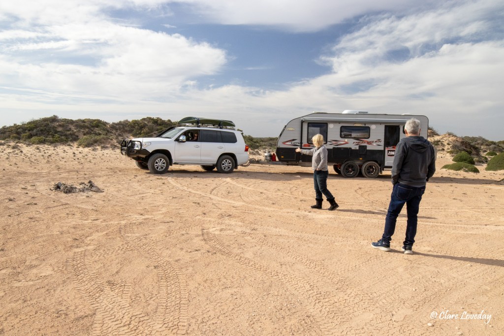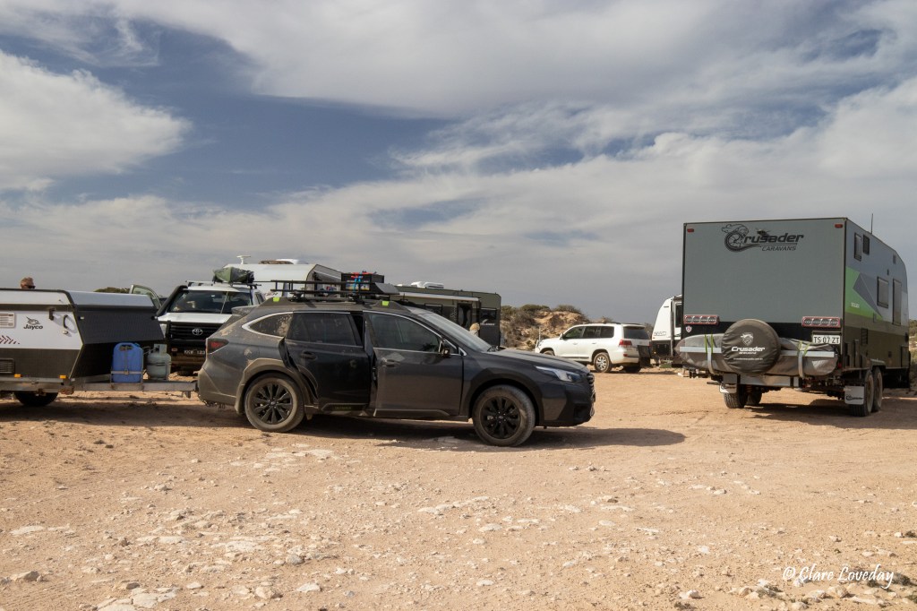 Unfortunately, Trev overshot the entry as there are no signposts and we had to all to a U-turn on the Nullarbor (very carefully) and finally located the entry. The road out was not too bad – a bit dusty and corrugated with some rocky patches. Trev was concerned for Matt and Sharon’s Subi’s clearance, but it made the journey with no issues.