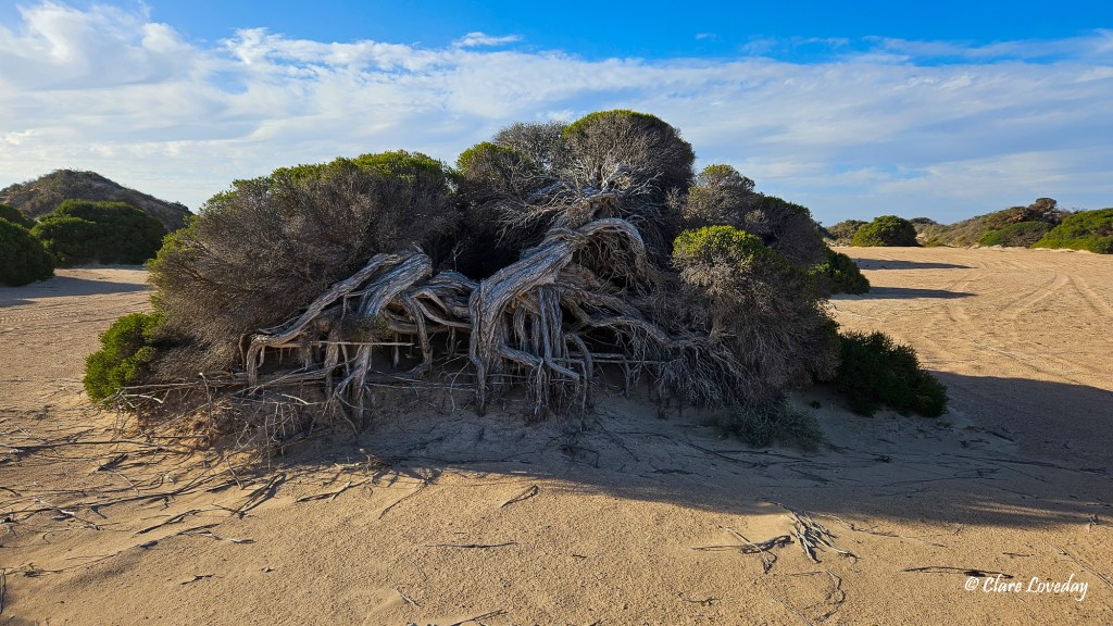 The limestone in the area is eroded and rugged plants are barely clinging on to the windswept top of the cliffs. There was also a lot of very bleached shells lying in the sandy soil – had they been there since the Flood??