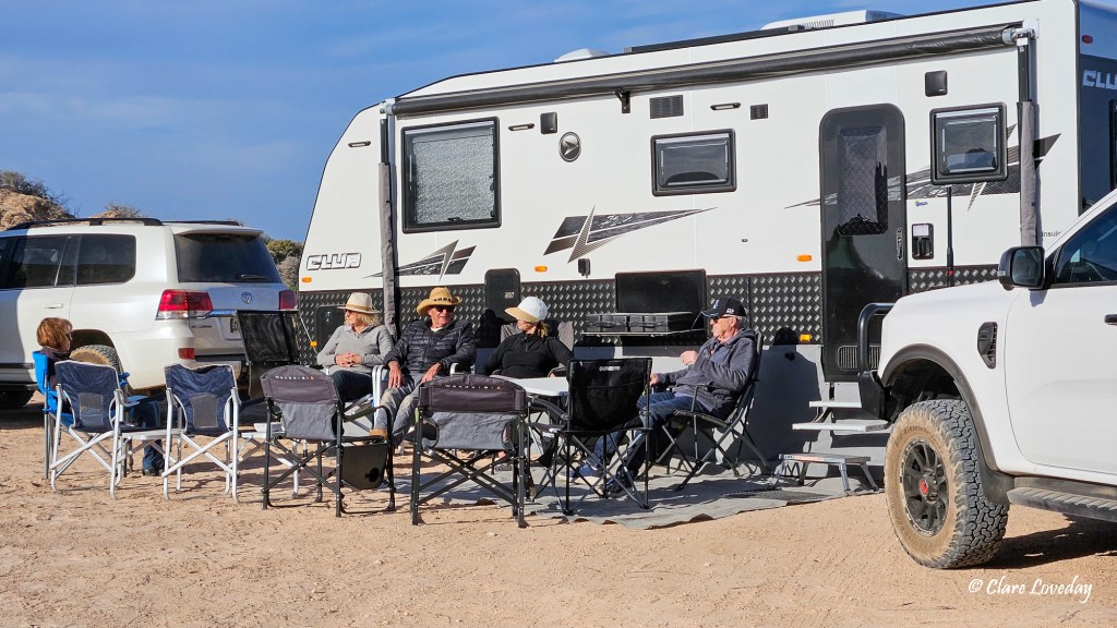 Dave was persuaded by Gordie to put on his skirt (caravan that is) due to the relentless wind – so we could try and sit out in relative comfort… after all if you didn’t get it out now when would you???