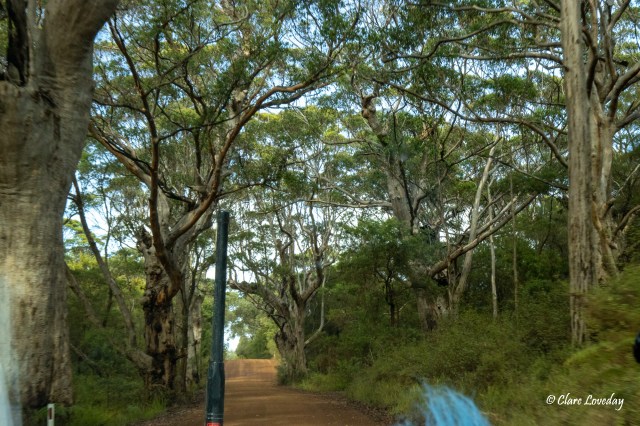 We drove out through Cosy Corner and into the National Park – and hit the dirt road which was in good condition. There was quite a forest of tall gums – a real change from the scrubby coastal landscape we have spent a lot of time in over the last few days…