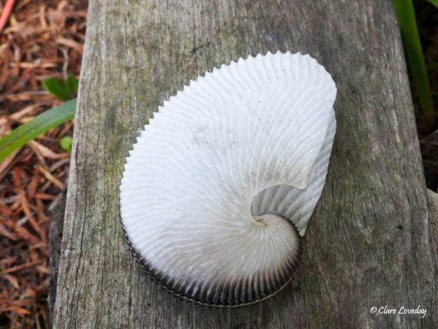 Klaus and Beryl went for a walk down to the beach – and Klaus scored a beautiful paper nautilus which had washed up with its little octopus dead on the beach – in perfect condition!!