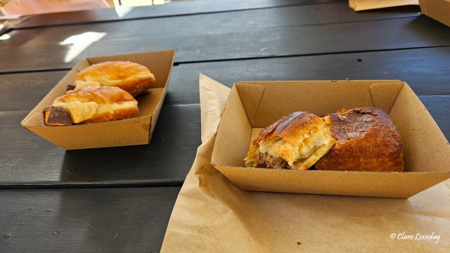 Trev was in his element – and so we ordered breakfast and morning tea… homemade sausage rolls and salted caramel donuts as well as bacon and egg rolls, vanilla slices, apple turnovers…..