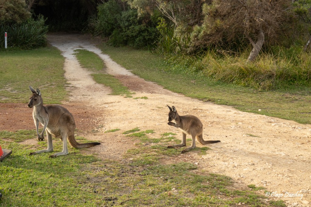 There were quite a few kangaroos around – though not nearly as many as inhabit Merry Beach!!