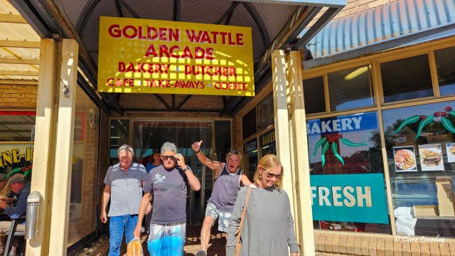 We all met at Walpole for fuel and morning tea which ended up as lunch as well at the Golden Wattle Arcade Bakery – as Gordie said “the BEST SAUSAGE ROLLS EVER!!” and the pies, zucchini tarts, carrot cake and vanilla slices were not too bad either…