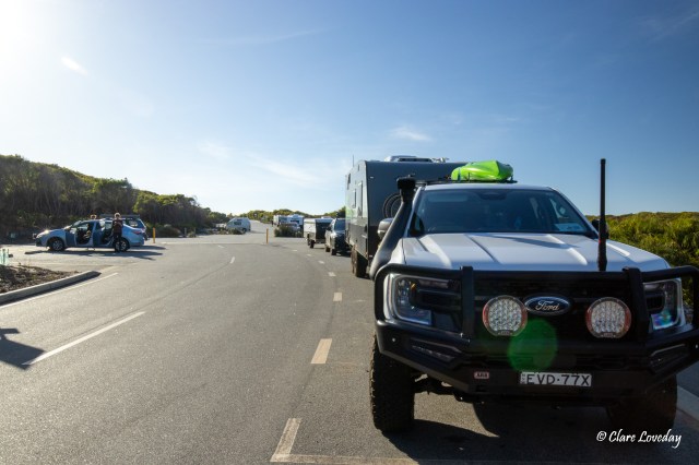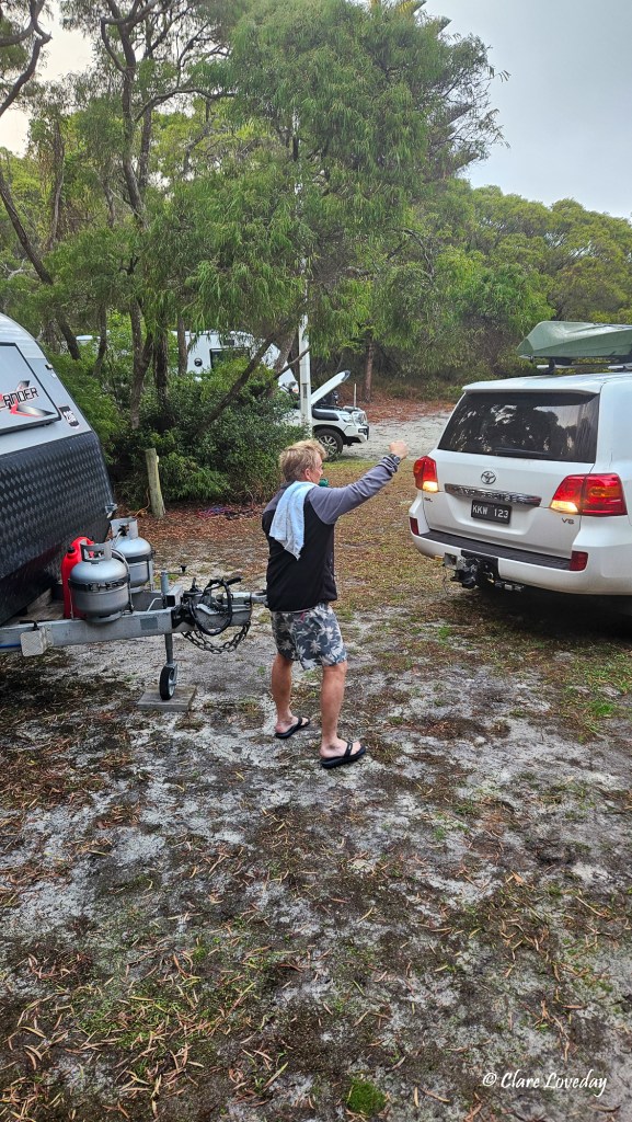 Arriving at Windy Harbor Nature Reserve we located on the office map our sites and drove in to park and set up. The sites were lovely and level with grass and easy to get into unlike our last camp….