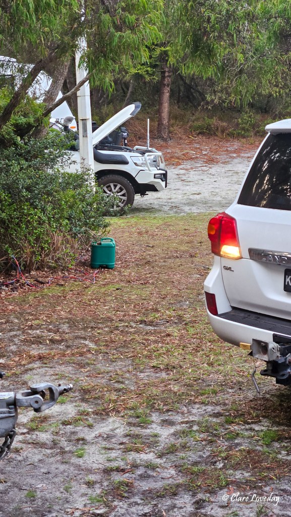 McGyver had been thinking about the mystery of the Wells flat battery and had come to the conclusion that the new ANDERSON plug (not the Anderson plug!!) had been wired to the wrong side of the ignition switch of the cranking battery – meaning that when they are parked for a period of time with the caravan connected, their fridge is draining their cranking battery – solution = disconnect the Anderson plug when stopped.