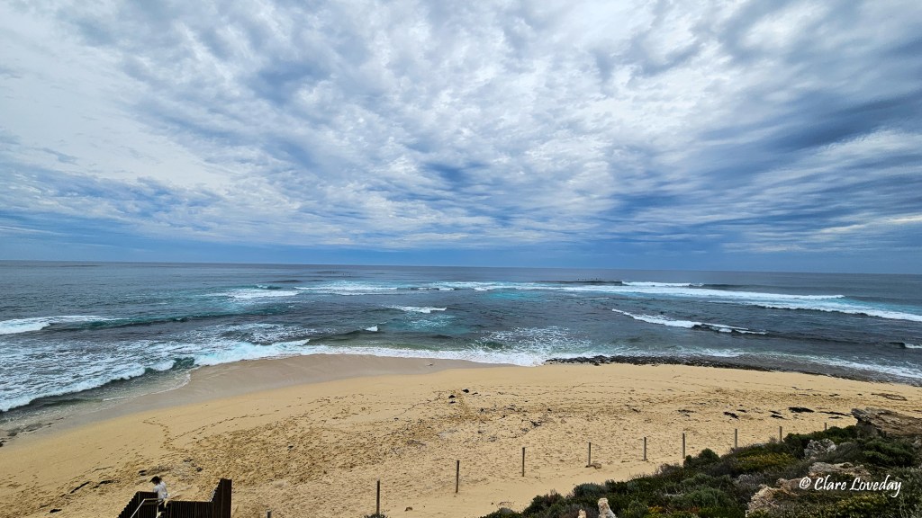 The afternoon went quickly as we sorted out some things at the campsite then went out to Gracetown as Trev and Gordie were hoping for a swim/ surf – unfortunately the weather had turned and the swell had dropped – a storm was closing in fast from the west as we watched a couple of dolphins swim past…