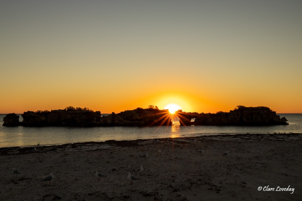It was a beautiful sunset – the Pirate Ship rock in the distance added to the pictures, and the sun through the natural window reflecting on the water was spectacular.