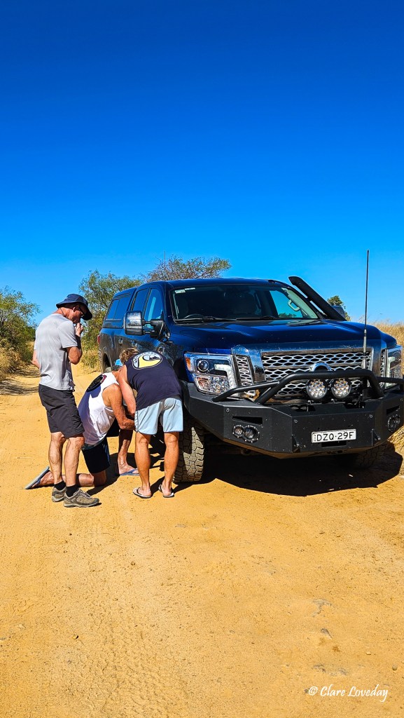 The last few kms were on a dirt/ sandy track so we stopped to let down the tyres for the 4WD section. Gordie was a bit rusty on the function of the tyre deflater but a quick refresher sorted that out!