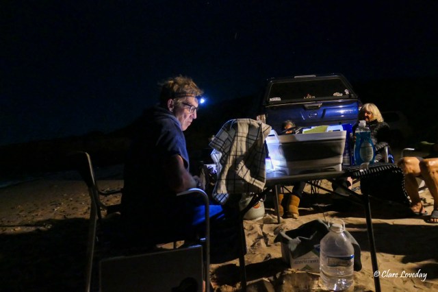We set up the tents – some appeared rather close to the high tide mark, but time would tell… the Hunters had opted to sleep in the back of the Titan and Gordie felt he had pole position closest to the sea…. A bit risky as far as everyone else thought anyway…