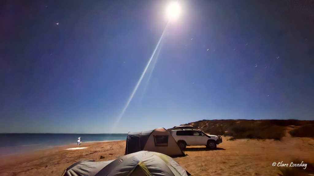 The almost full moon came up and the beach was beautiful in the moonlight – the stars were amazing and it was so quiet and peaceful listening to the ocean gently lapping the shore…