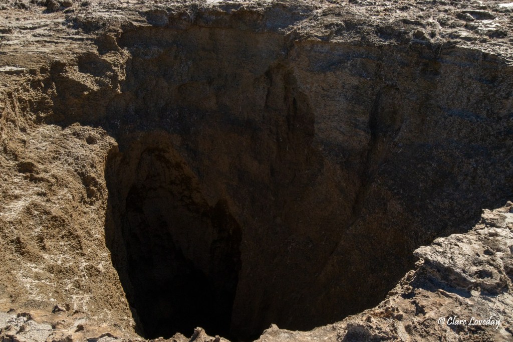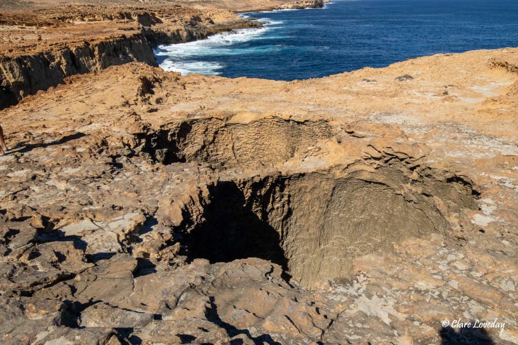 There were many small fissures and holes through out the area where sounds and wind were coming up (not due to any human interference although Trev thought Klaus was experiencing some more legendary rumblings) – the whole area must be undermined by the sea and full of subterranean caverns… we hoped that none would collapse as we walked around….