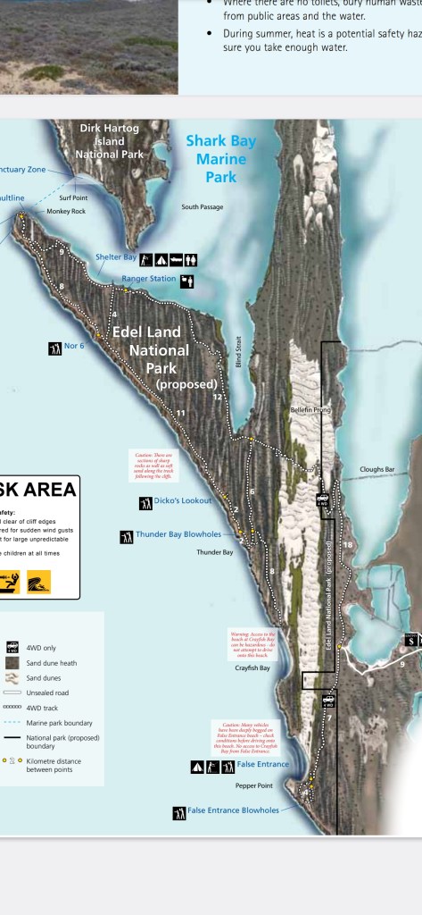 Our planned trip out to Steep Point started at 0800 as we knew it was a long 4WD trip to get there over rough tracks and sand…. We had checked out the map and decided to tackle the journey along Useless Loop Road and turn off to Thunder Bay thus making our way up the left hand side of the peninsula to Steep Point aiming to see all the coastline….