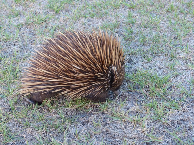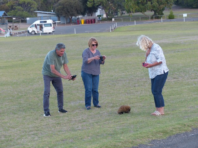 Back at Emu Bay, Klaus saw an echidna just strolling across the park – it was completely unperturbed by the human interest….