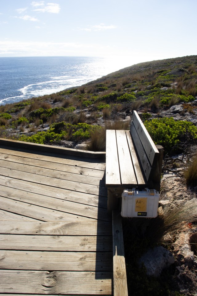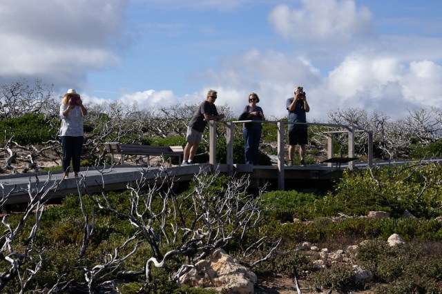 We walked down the boardwalk looking at the wild remote coastal area on the southwestern tip of KI and marvelling at the rugged beauty of it. The area teems with wildlife – 85% of South Australia’s marine flora and fauna are found nowhere else in the world. Out on the edge of the continental shelf here are huge submarine canyons bigger than the Grand Canyon. They are channels for the currents that bring up cold nutrient rich water that wells up from the deep-sea floor, which attracts marine life in large numbers.