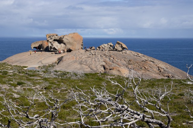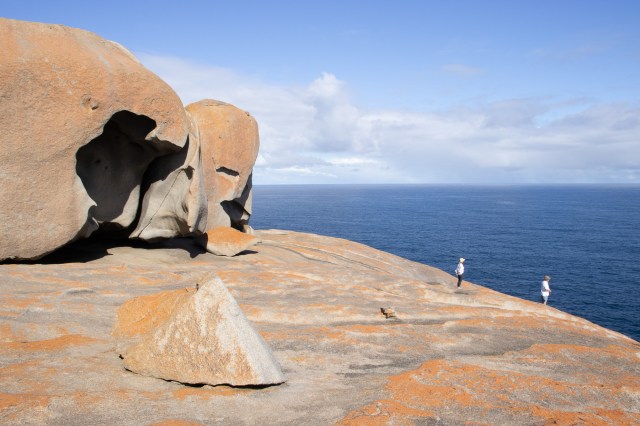 It took a while to pry Gordie out of the surf, but Kerry eventually succeeded, and we were back on the road towards Flinders Chase National Park and the Remarkable Rocks.