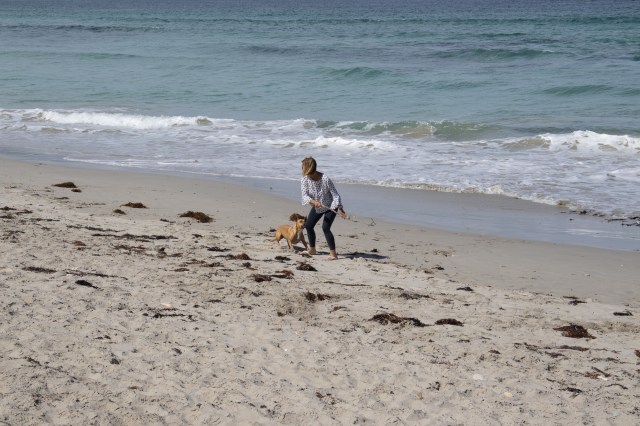 Rosie made a doggy friend on the beach while we waited for Gordie to exit the water.