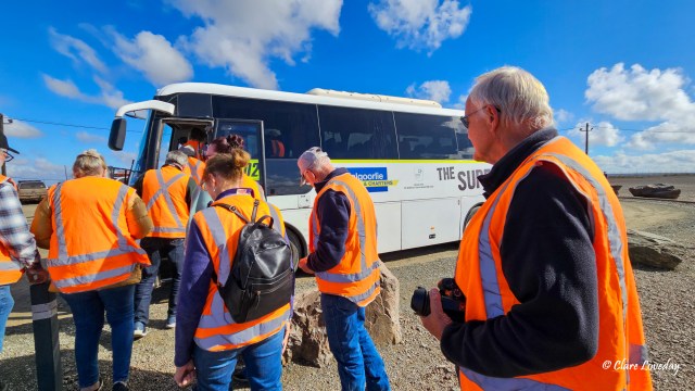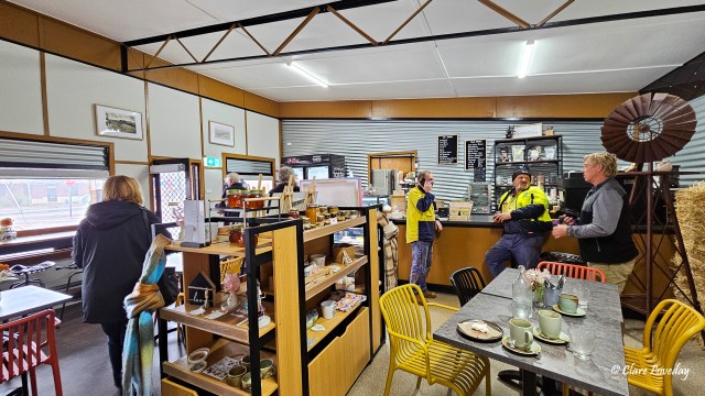 As we were about to leave the café, we asked the ladies about the road conditions between Southern Cross and Hyden going via Marvel Loch…. They did not know… but as we were just walking to the door, the door opened and in came 2 men in hi-vis – and the ladies (who knew them) said these are just the guys you should talk to – they were the local council roads guys!!