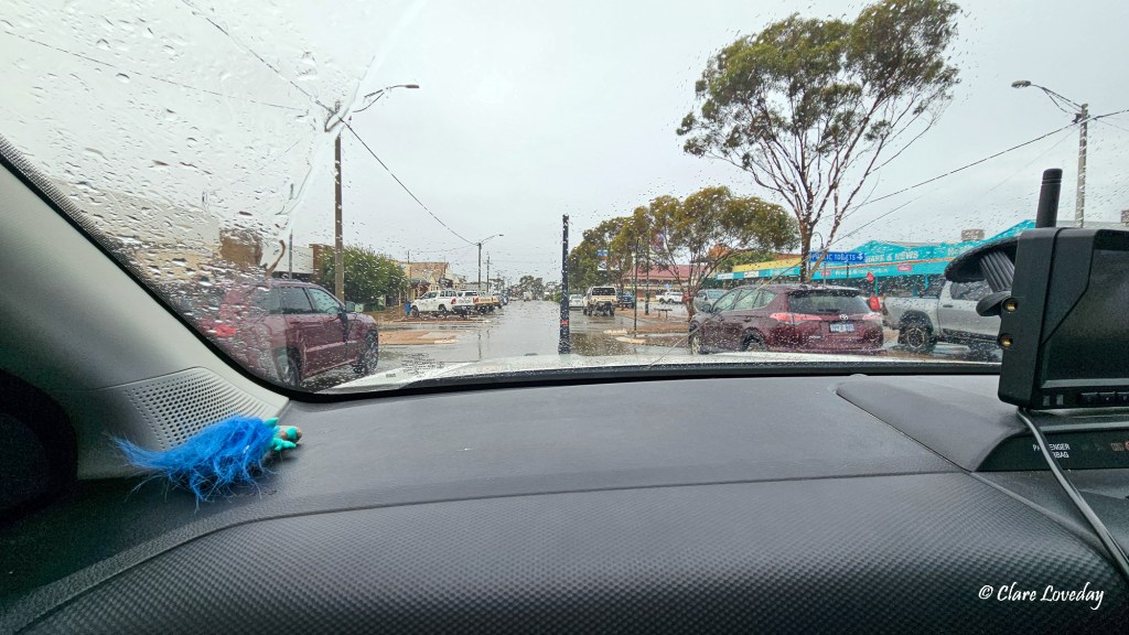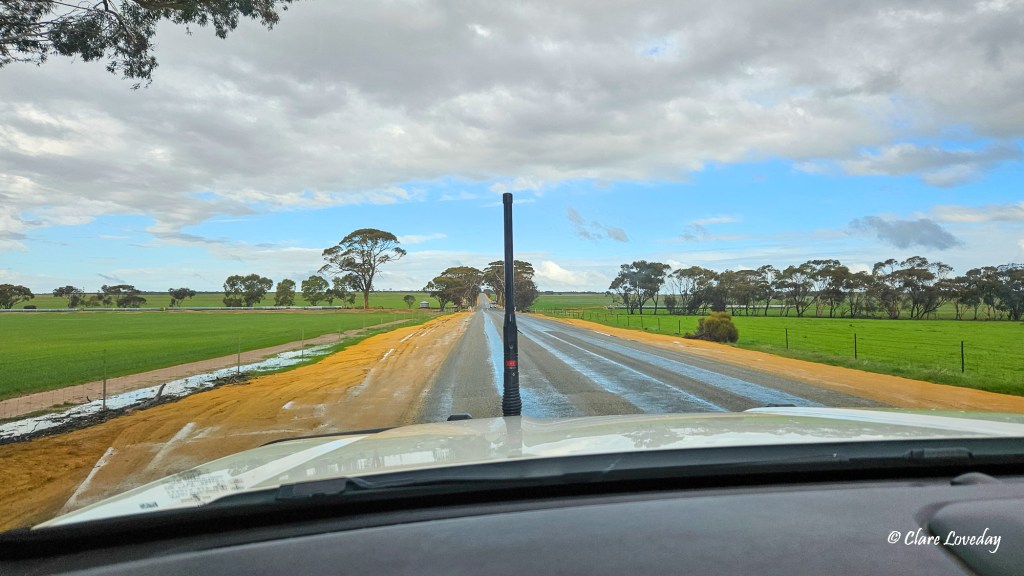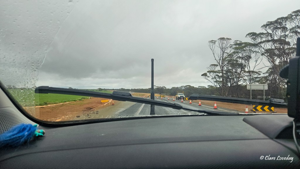 It was teeming with rain and the roads were very wet – and quite busy with wide loads and traffic making the drive tricky… and we were starting to get concerned about the condition of some of the unsealed roads we needed to travel on to reach Hyden…