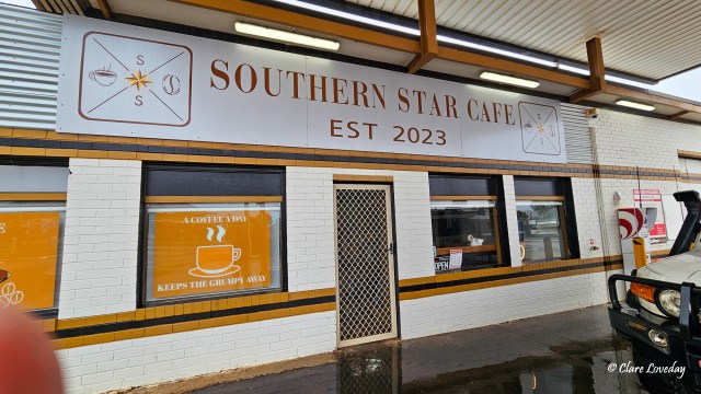 Then just “happening” to choose the Southern Star Café over the other cafés in town and having the conversation with the ladies re the road just as we left…. And the very men who had the knowledge we needed actually walking through the door just as we were about to go out – again no coincidence – God at work caring for us each step of the way preventing us from a nightmare trip and potential disaster with caravans on flooded unsealed roads…