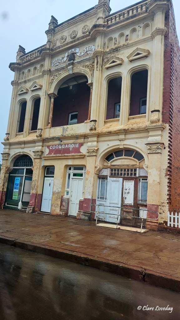 We drove out of the caravan park in the rain and turned towards Coolgardie – driving straight through we headed for the town of Southern Cross that was around 2 hrs away – and a stop for morning tea before heading south down some sealed and unsealed roads to the town of Hyden and Wave Rock….