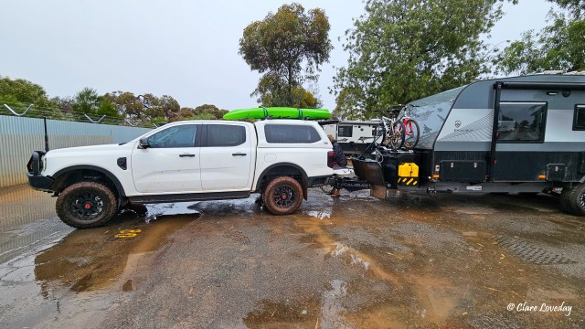 We awoke to the sound of rain bucketing down – not a great start to the day hitching up the vans in the rain…..